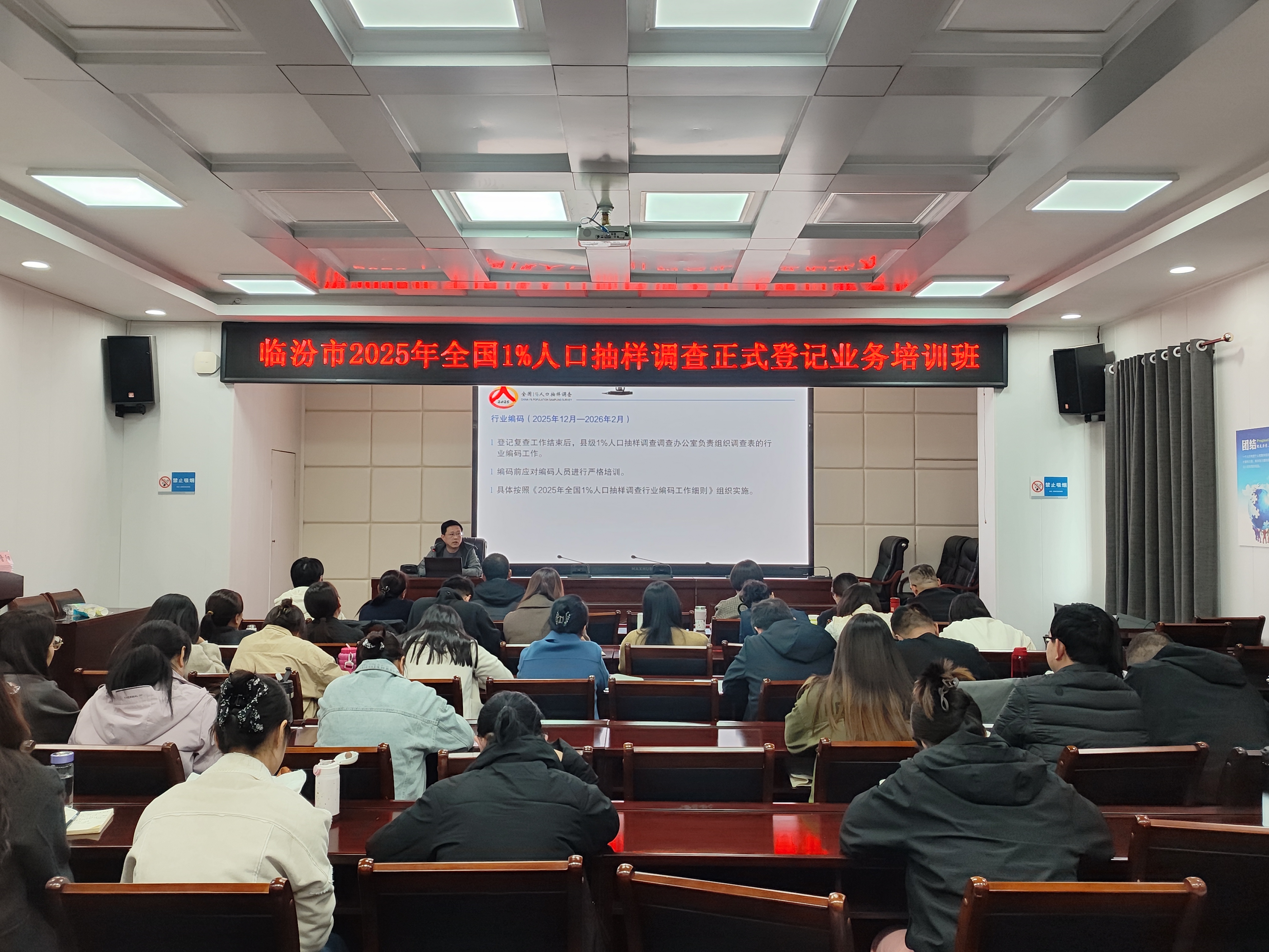 为扎实推进全市2025年全国1%人口抽样调查,确保11月1日零时起正式启动的入户登记工作精准高效推进,临汾市统计局举办了2025年全国1%人口抽样调查正式登记业务培训班。各县(市、区)统计局负责2025年全国1%人口抽样调查的分管领导、业务骨干、数据处理人员共计50余人参加培训。